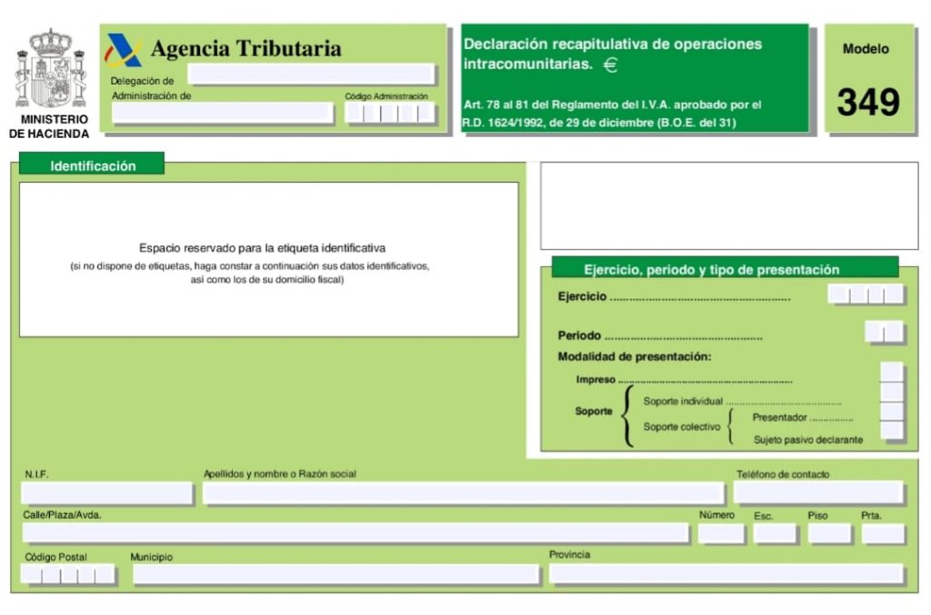 Plantilla del Modelo 349 Gratis (Agencia Tributaria)